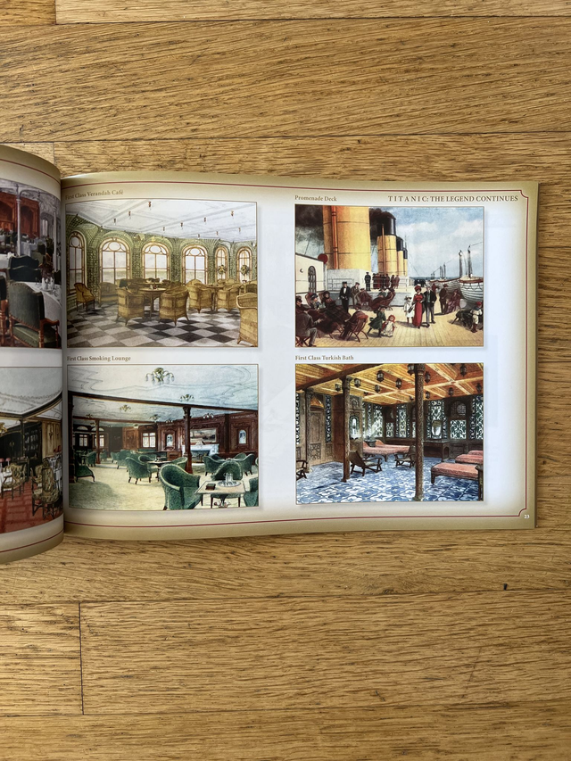 petit livret ecrit en anglais avec description de l'histoire du titanic et avec de belles images d'objets et de cartes postales crééé et par la société white star memories